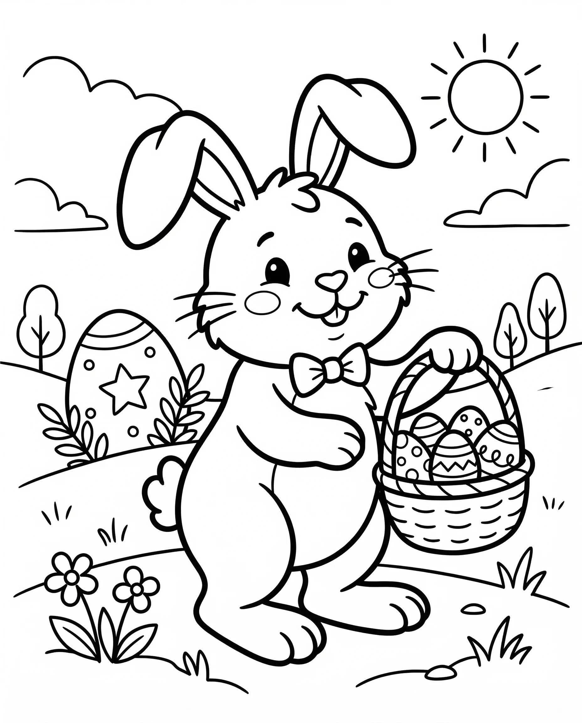 Easter Bunny with Basket Colouring Page