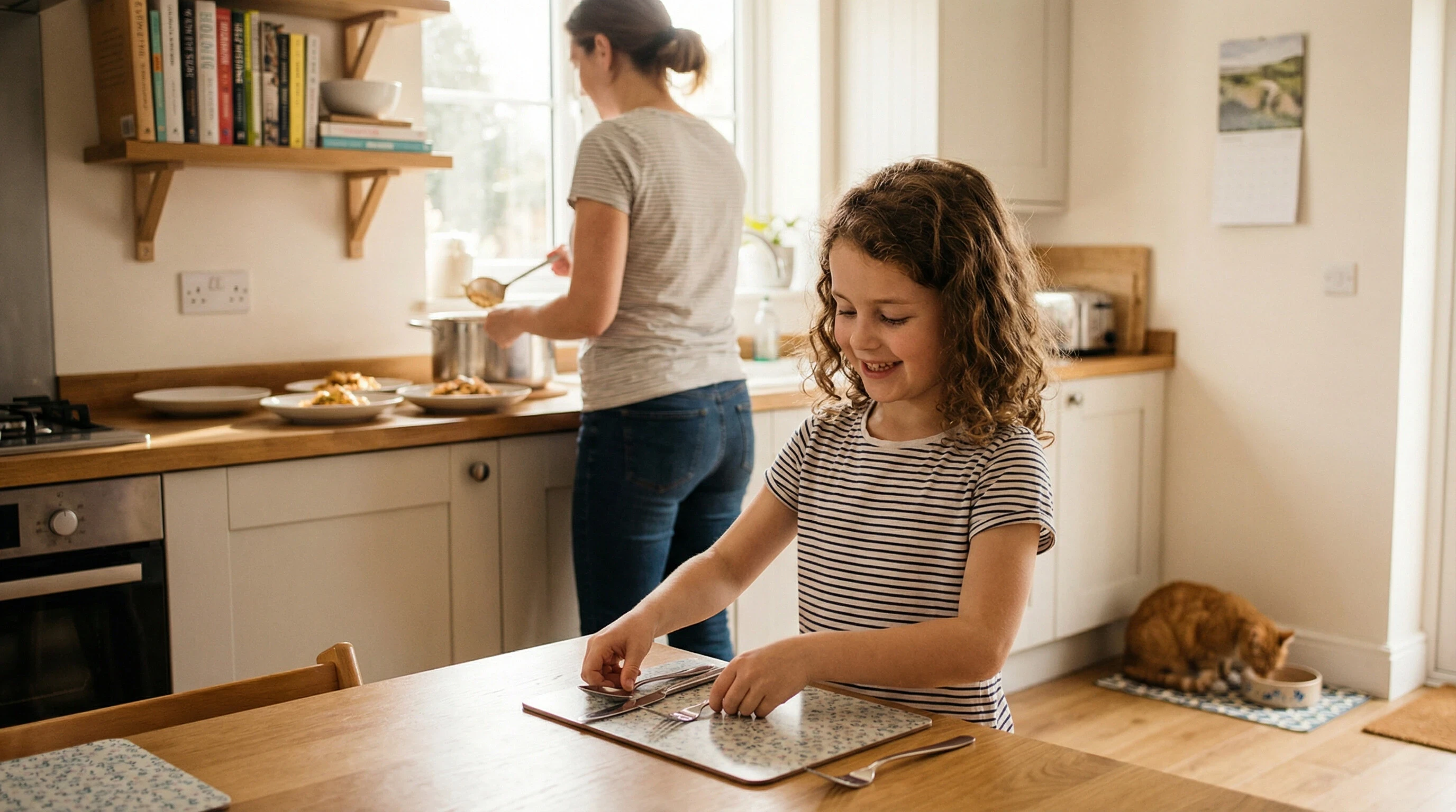 Primary-age children can take on more structured routines, such as packing school bags, managing homework time, and completing simple chores. Allowing children to organise their own homework or make decisions about lunches and after-school tasks helps them see the connection between effort and outcome. Responsibility starts to feel meaningful rather than imposed.